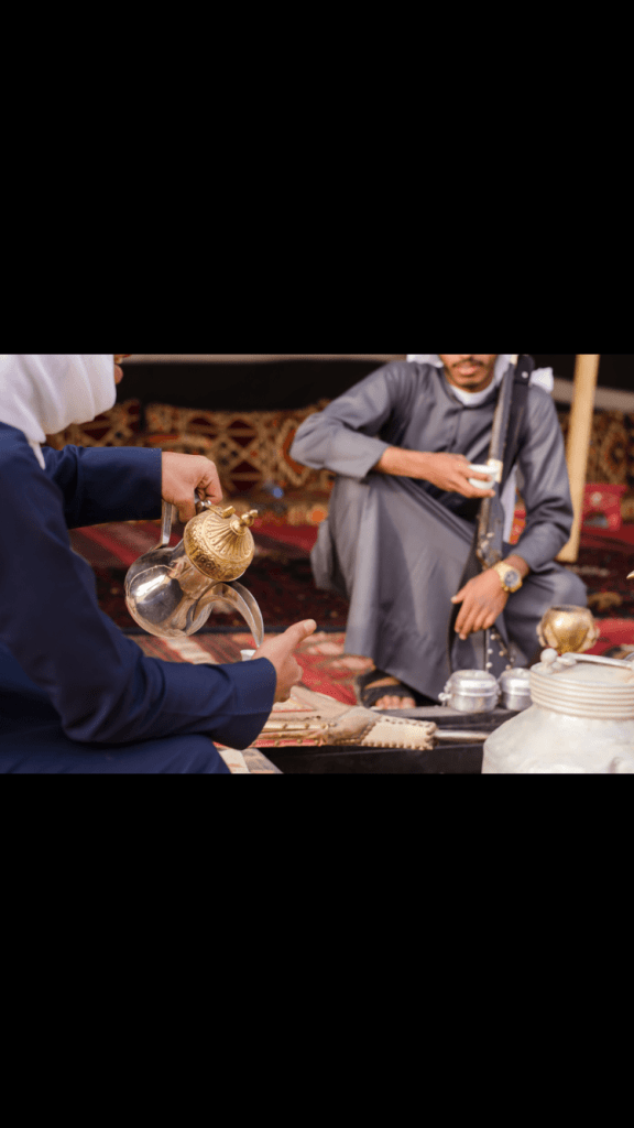 • تُسْكَب القهوة باليد اليسرى، ويُقَدَم الفنجان باليد اليمنى.